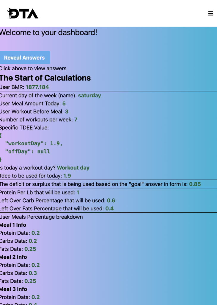 Want to give it a try? Contact me for a free custom diet plan! ***Disclaimer: The live website link below serves as both the live site and the development environment. For the best experience, please reach out before testing it!